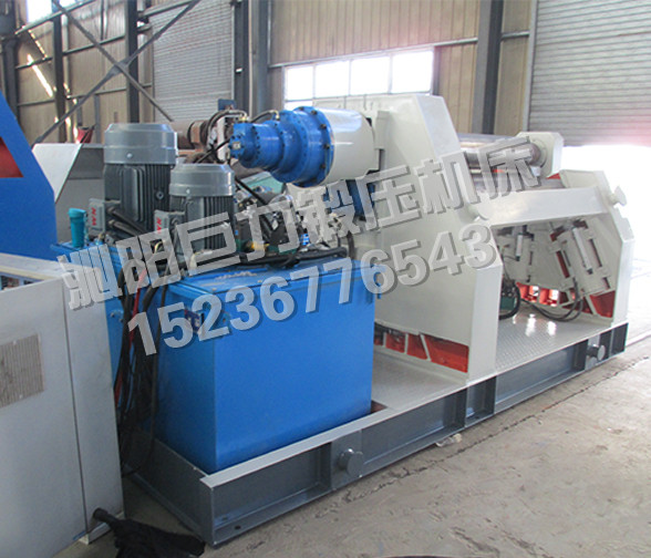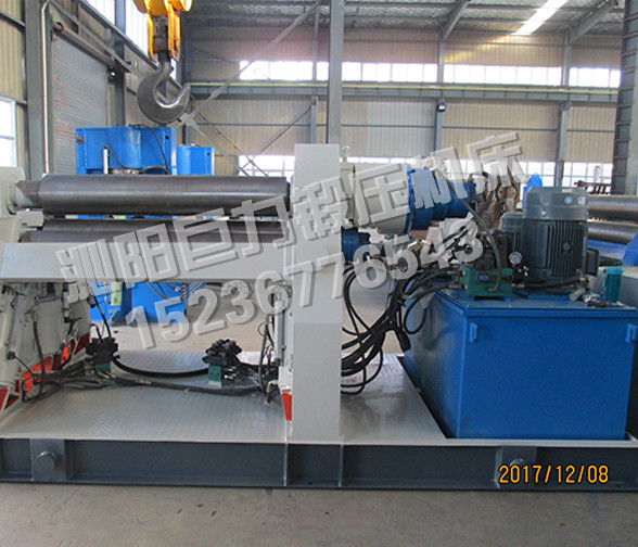 该四辊卷板机与对称三辊卷板机比较,它可以不借助其它设备模具,直接予弯板材端部,而且剩余直边较小;它可以不使板材调头,而卷成工件。