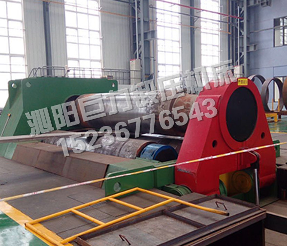 該四輥卷板機與對稱三輥卷板機比較,它可以不借助其它設備模具,直接予彎板材端部,而且剩余直邊較小;它可以不使板材調頭,而卷成工件。